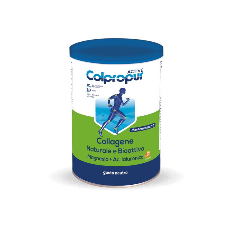 Colpropur Active è un integratore alimentare formulato per supportare la salute delle articolazioni, tendini e muscoli. La sua composizione con acido ialuronico ,magnesio collagene idrolizzato di alta qualità, arricchito con vitamine e minerali essenziali favoriscono la rigenerazione e il mantenimento del tessuto connettivo